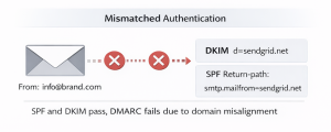 Mailbox providers expect consistency. If SPF or DKIM authenticate using a different domain than the one users see, the message looks suspicious and often fails DMARC alignment. This directly impacts inbox placement and domain reputation.