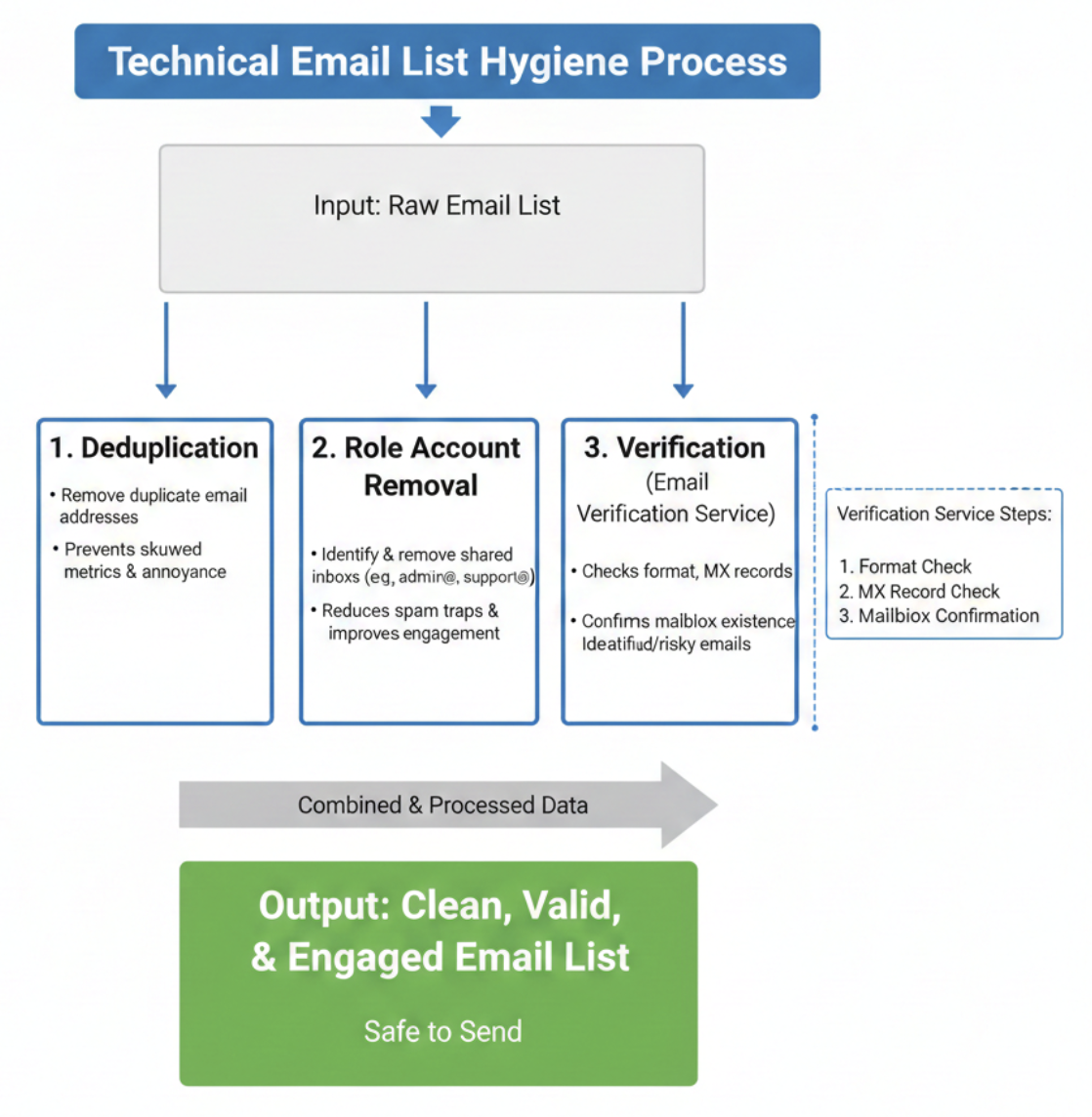 Effective list hygiene involves a technical process that goes beyond just checking if an email exists: